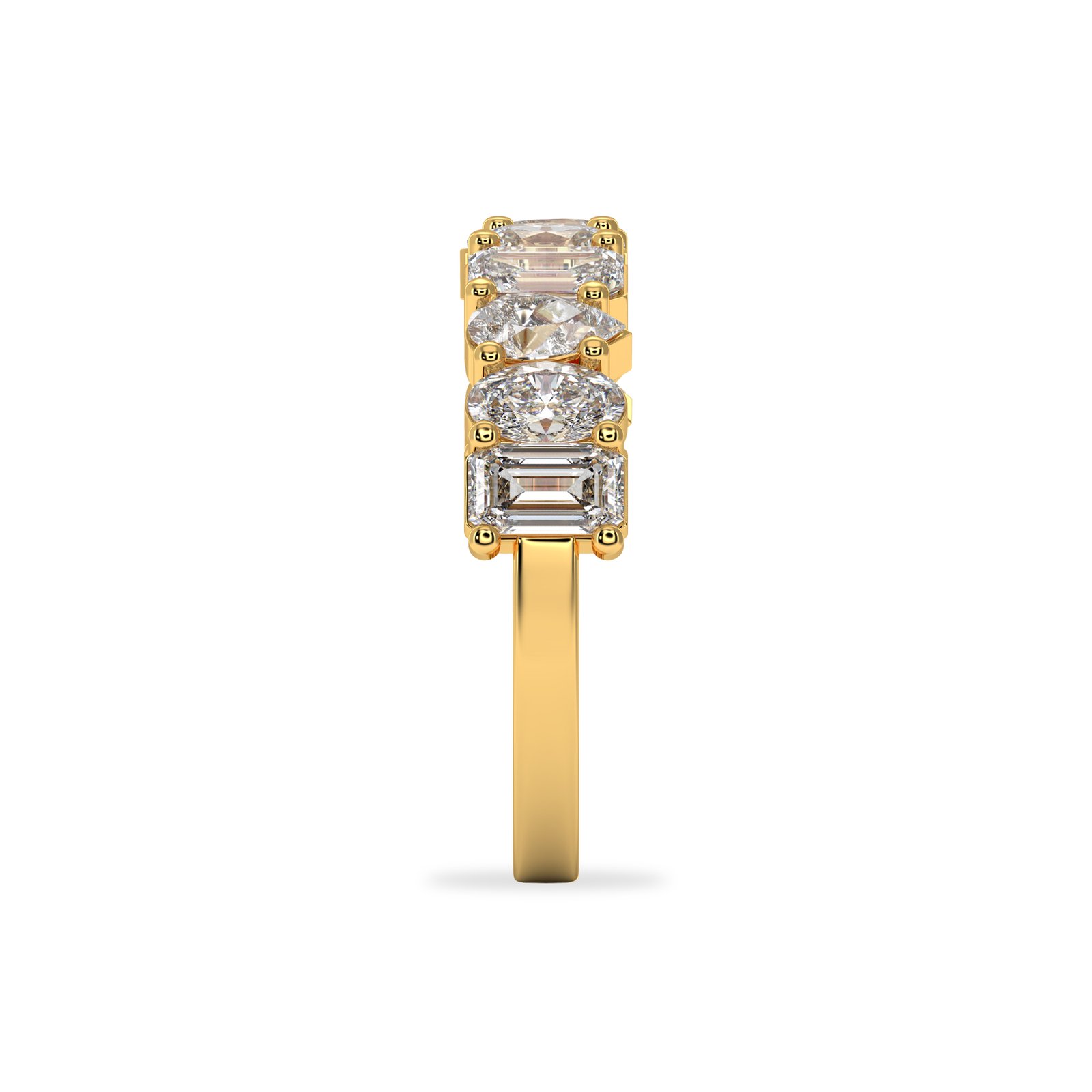 This elegant 18K Emerald, Pear, and Oval Cut Lab Grown Diamond Wedding Band features a stunning combination of three distinctive diamond shapes arranged in a beautiful alternating pattern. The clean lines of emerald cuts, the graceful curves of pear shapes, and the brilliance of oval diamonds create a unique design that offers both modern style and timeless elegance. Crafted in luxurious 18K gold, this ring provides a refined look with exceptional sparkle. Perfect as a wedding band, anniversary ring, or stacking ring, it adds a sophisticated and eye-catching touch to any jewelry collection.