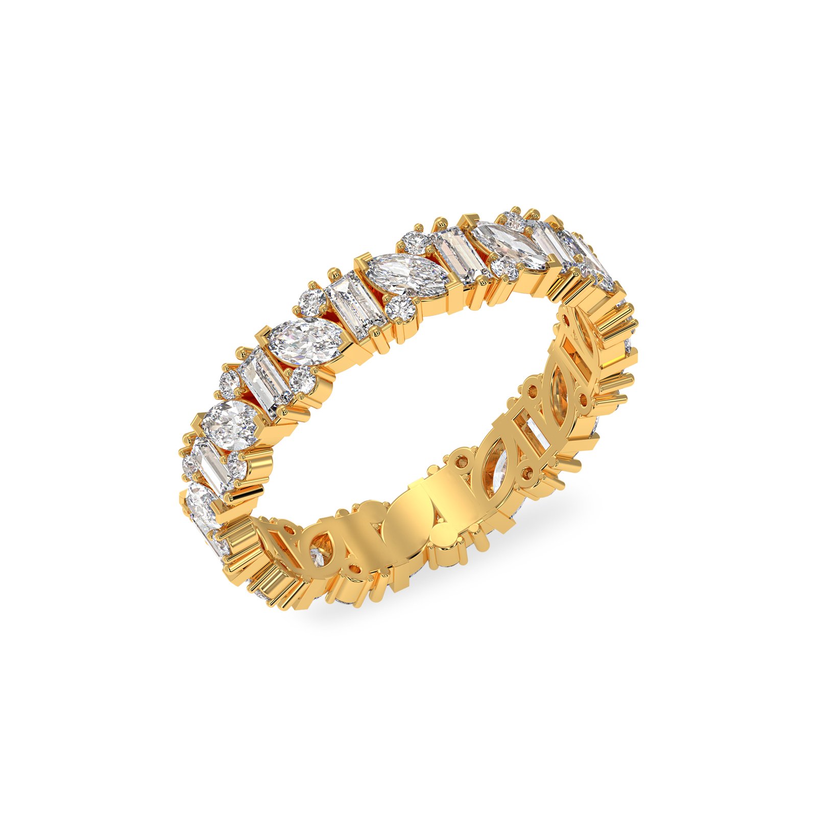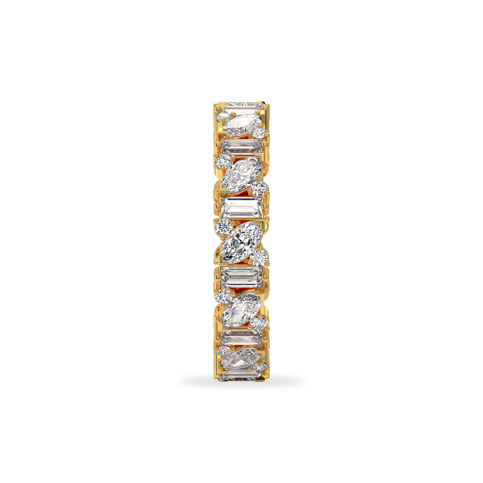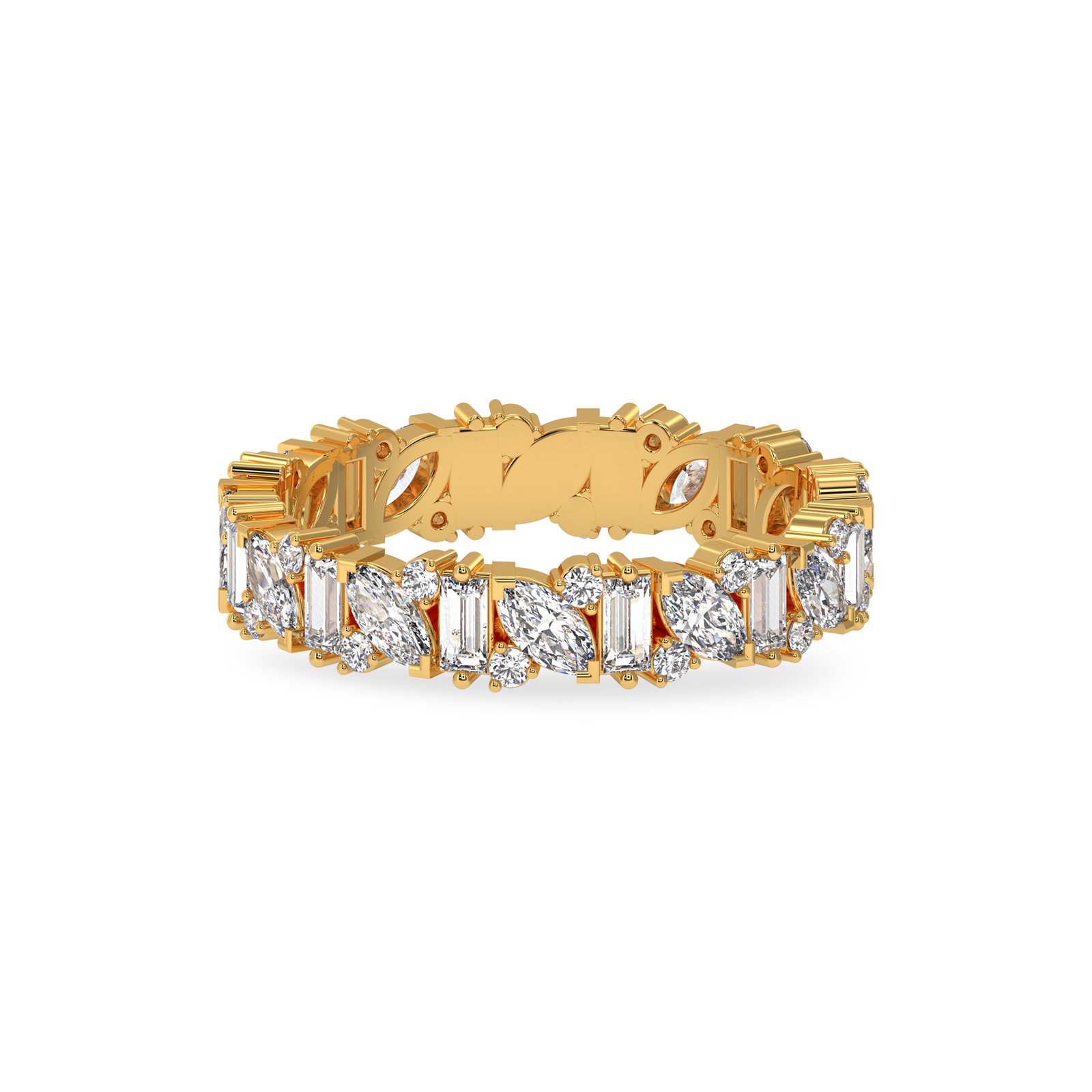Exude modern luxury with this meticulously crafted eternity band. Designed to capture light from every angle, this ring features an artful, repeating sequence of 12 marquise-cut stones (2.00 x 4.00 mm) alternating with 12 baguette-cut stones (3.00 x 1.50 mm).