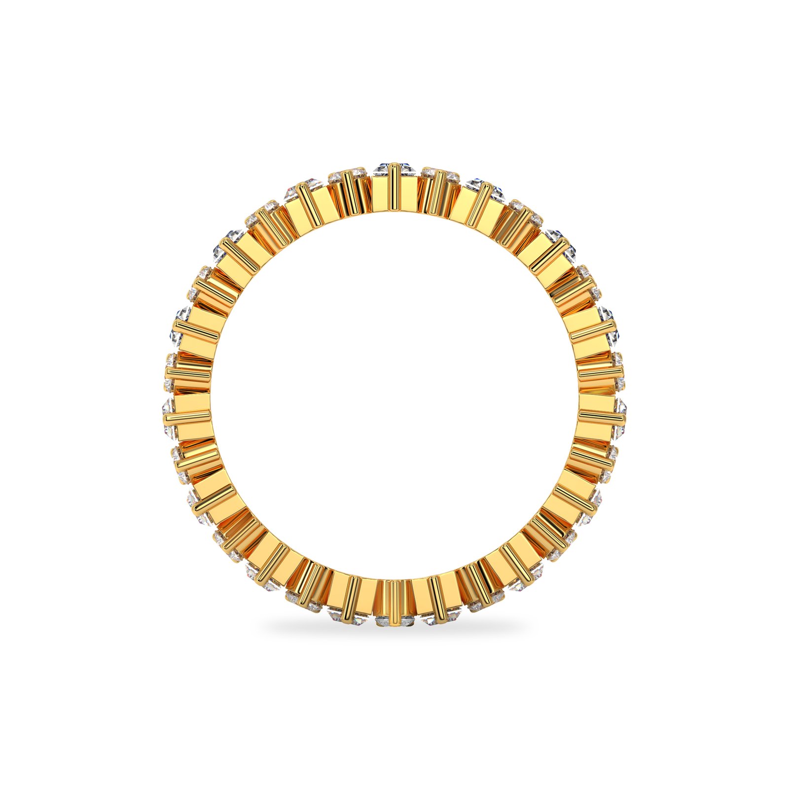 With a substantial 5 mm width and a 2.20 mm profile, this band is crafted to be a standout statement piece. The robust multi-prong setting ensures each stone is securely held while allowing maximum light entry for exceptional, all-around fire and brilliance.