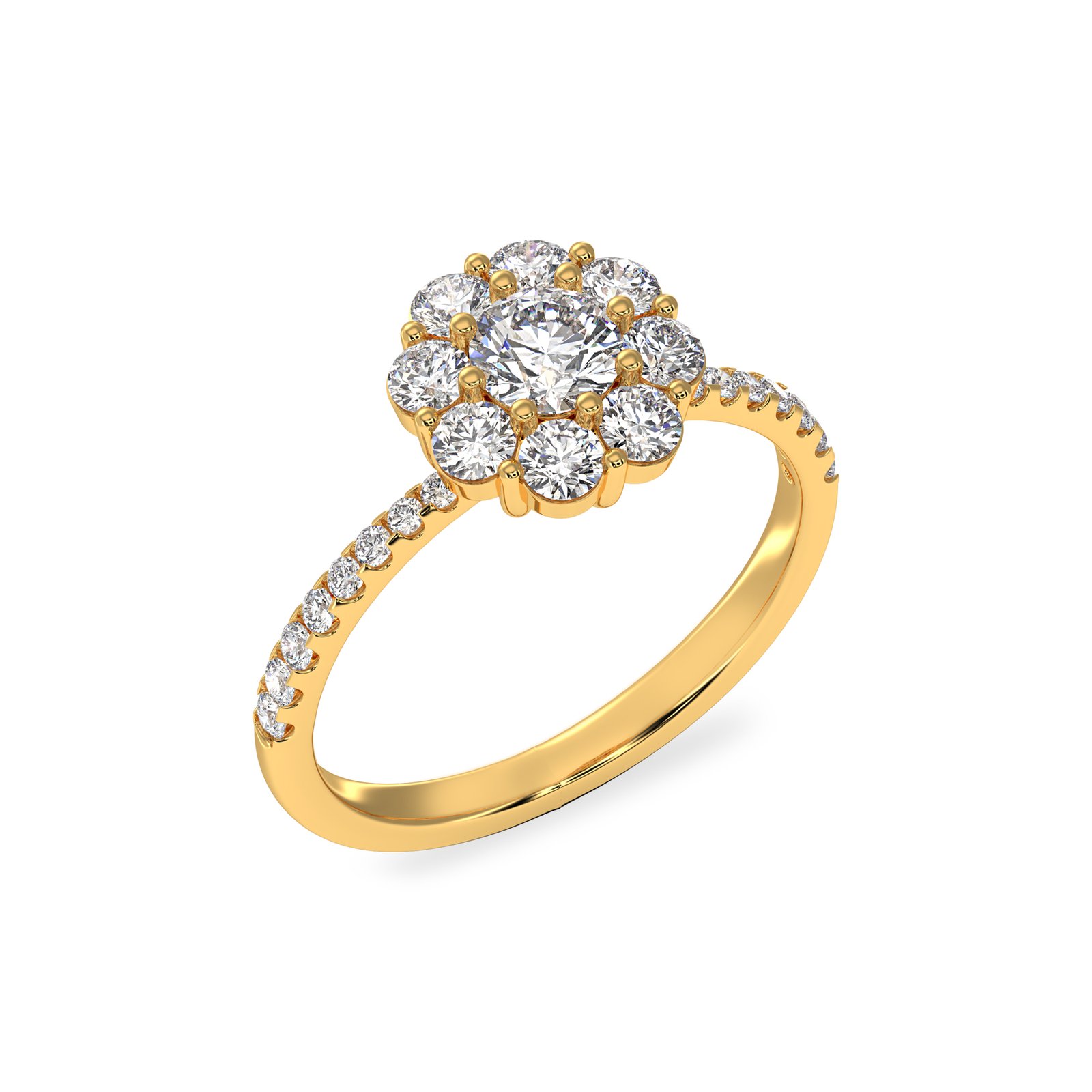 Round Cut Lab Grown Diamond Floral Halo Engagement Ring in 18K Gold – 16507
