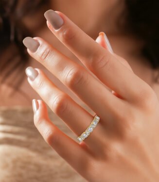 Minimalism meets precision with this refined band. Featuring a crisp, single-row channel of sparkling diamonds set against a smooth, polished gold edge, this ring offers a bold yet understated aesthetic. The combination of a high-shine metal profile and a continuous line of diamonds creates a sleek, architectural look that is both timeless and strikingly modern….